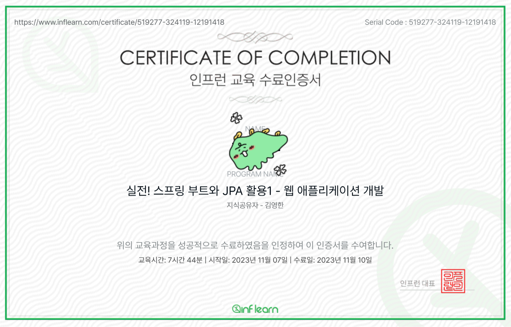 ์ธํ๋ฐ - ์ค์ ! ์คํ๋ง ๋ถํธ์ JPA ํ์ฉ! - ์น ์ ํ๋ฆฌ์ผ์ด์ ๊ฐ๋ฐ