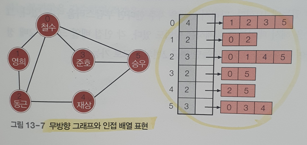 - ๊ฐ ์ ์ ์ ์ฐ๊ฒฐ๋ ์ ์ ๋ค์ ์ฐ๊ฒฐ๋ฆฌ์คํธ ๋์ ๋ฐฐ์ด๋ก ์ ์ฅํ๋ฉด