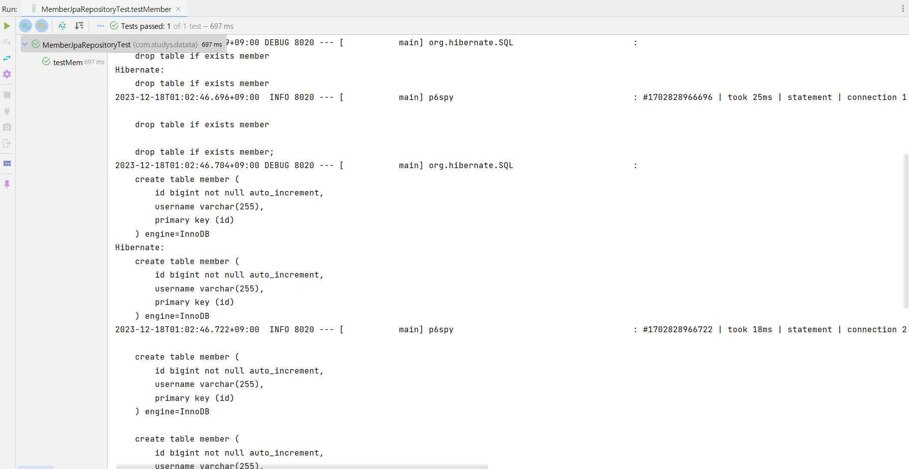 - ๊ทธ๋์ CREATE TABLE member์ฟผ๋ฆฌ๋ฌธ์ผ๋ก ํ ์ด๋ธ์ ์๋์ผ๋ก ๋ง๋ค์ด๋๋ ํต๊ณผํจ(์์!)