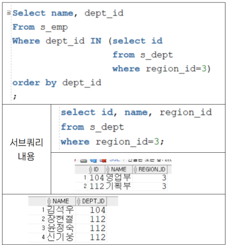 - 서브쿼리→ main쿼리로 전달되는 행이 여러개.