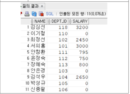 - 다중행 연산자 사용. (In, Not In) ③