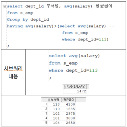 Having절에서의 SubQuery