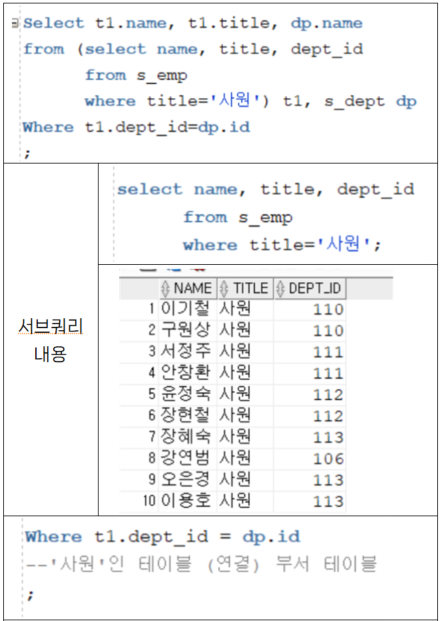 - 이런 서브쿼리를 InLine View라고 부른다. ④
