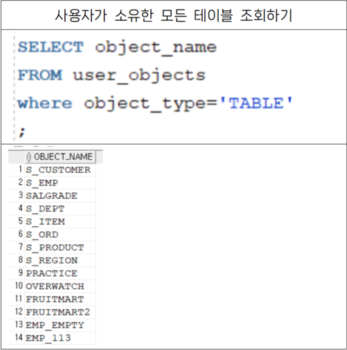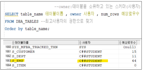 - ๋ฐ์ดํฐ์ฌ์ ํ ์ด๋ธ์ SYS์ฌ์ฉ์๊ฐ ์์ ํจ. (SYS=์ค๋ผํด super์ฌ์ฉ์๊ณ์ . DBA๊ณ์ )
