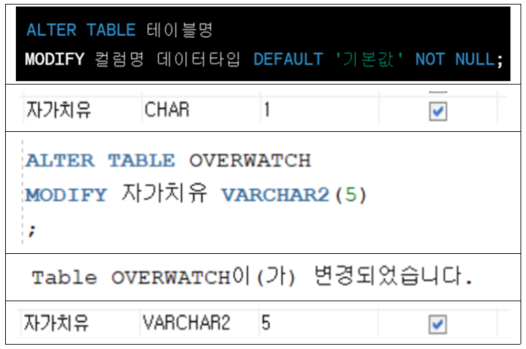 ์ปฌ๋ผ ์์ ALTER TABLE + MODIFY