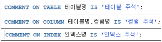 ์ฃผ์ ๋ฌ๊ธฐ COMMENT ON + T/C/I...