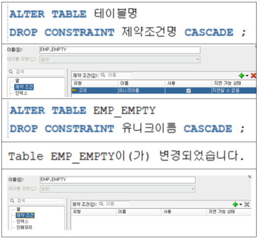 ์ ์ฝ์กฐ๊ฑด ์ญ์ A/T + DROP CONSTRAINT