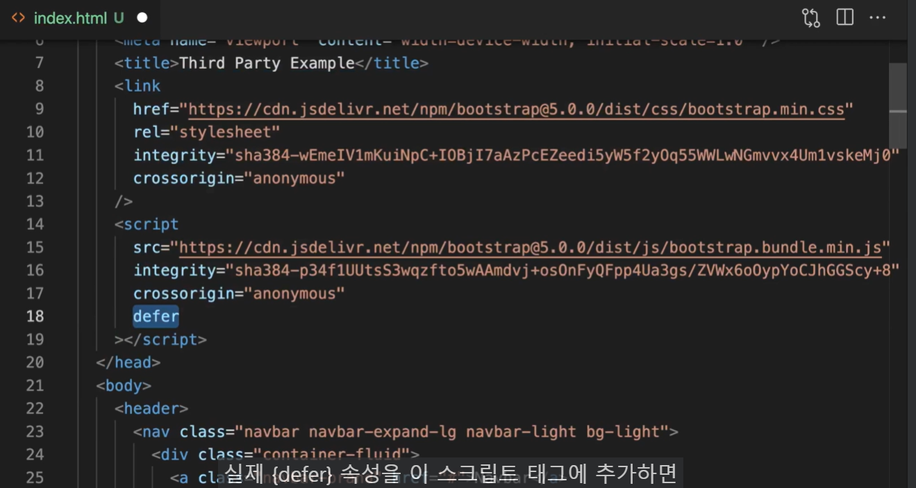 ์ธ๋ถ ์คํฌ๋ฆฝํธ๊ฐ DOM ์์์ ์์กดํ๊ฑฐ๋ ์์ ํ๋ ๊ฒฝ์ฐ ์ ์ฉ