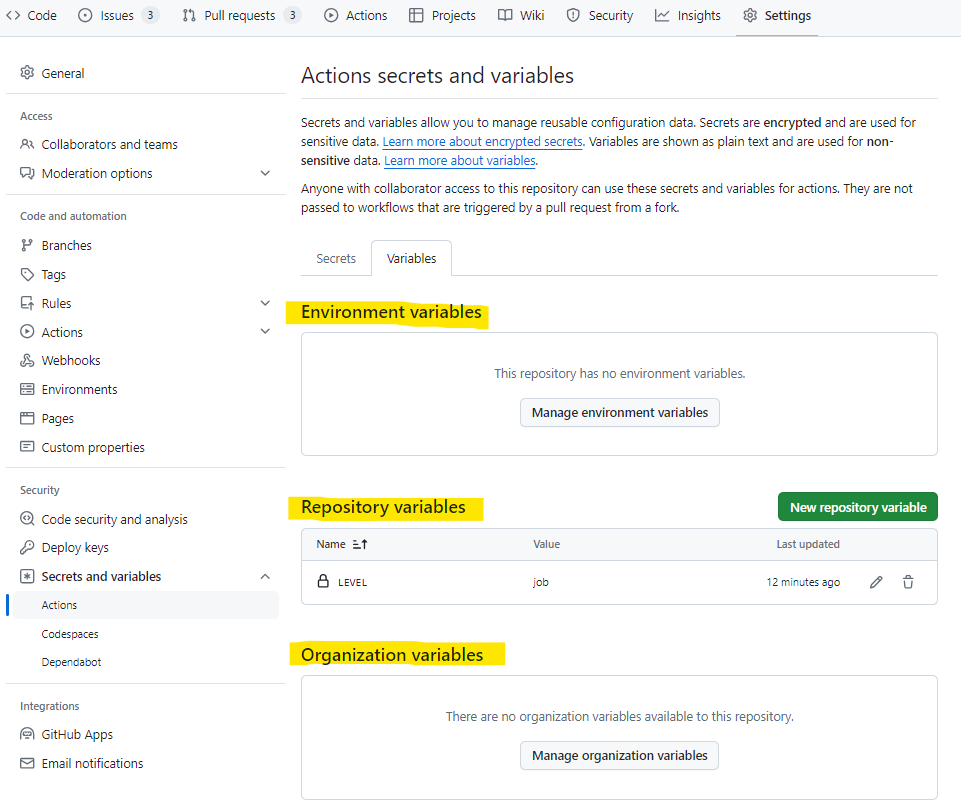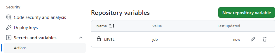 - Settings - security - Actions secrets and variables - Actions - variables