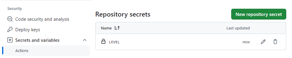- Settings - security - Actions secrets and variables - Actions - secrets