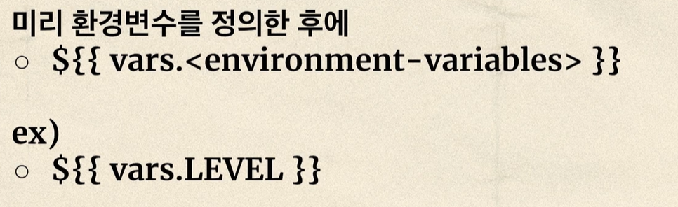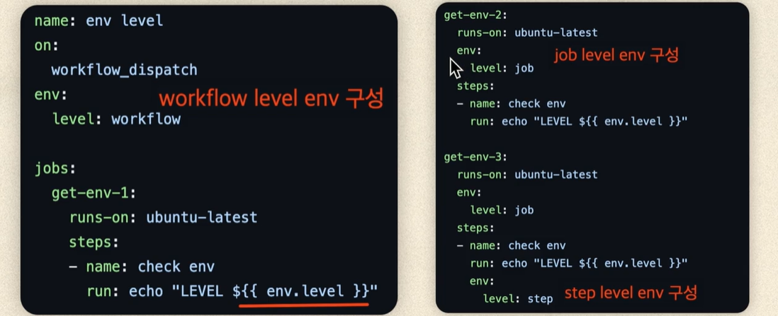 level: workflow # ์ํฌํ๋ก์ฐ ๋ ๋ฒจ env ์ ์