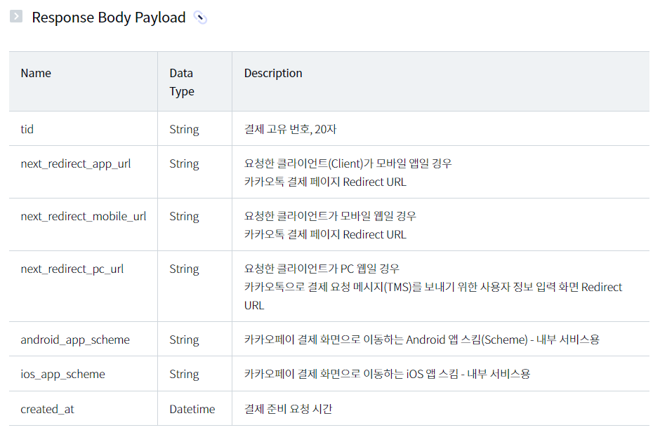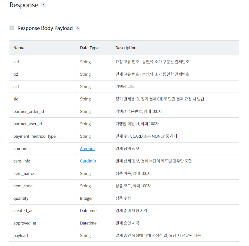 - KakaoPaymentApproveResponseDTO : ์ฑ๊ณต ์ ์๋ต bady ๋ด๊ธฐ