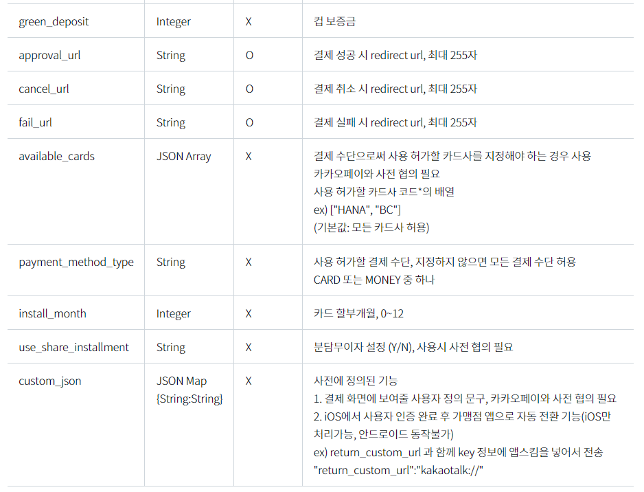 - KakaoPaymentApproveRequestDTO : ๊ฒฐ์ ์น์ธ์ ์ํ ์์ฒญ body