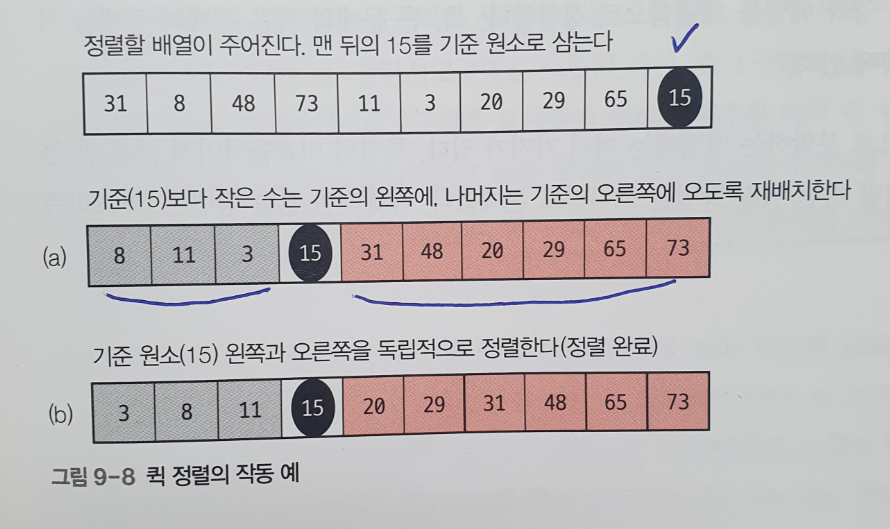 - ํผ๋ฒ์ ๊ธฐ์ค์ผ๋ก ๋ฐฐ์ด์ ๋ ๋ถ๋ถ์ผ๋ก ๋๋๋๋ค: ํผ๋ฒ๋ณด๋ค ์์ ์์์ ํผ๋ฒ๋ณด๋ค ํฐ ์์.