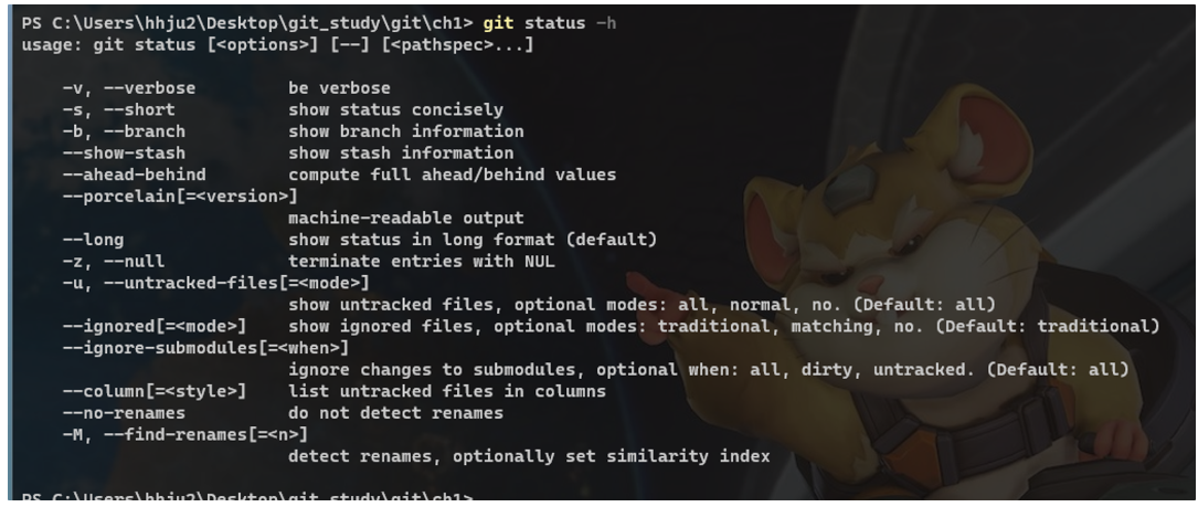 git status๋ช ๋ น์ด์ ๋ค์ํ ์ต์ . ๊ธฐ๋ณธ์ ์ผ๋ก๋ --long์ ์ฉ