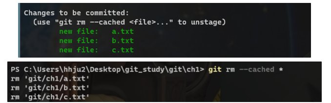 - git rm —cached … ํ๋ฉด unstage ํ ์ ์๋ค๋ ๋์๋ง์ด ์์