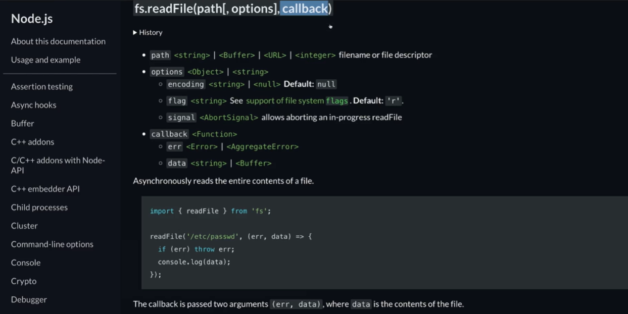 fs.readFile('example.txt', 'utf8', (err, data) => {
